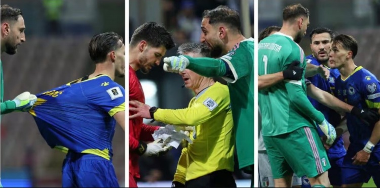 在意大利第一个点球罚丢后,多纳鲁马与波黑门将瓦西里发生了争执,后者为意大利罚失点球欢呼时,多纳鲁马在球门旁抢走了瓦西里准备的小抄,上面记录了所有意大利球员罚点球时的偏好,小抄被弄得破破烂烂的,显然多纳鲁马试图撕毁它。